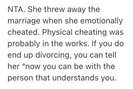 She begged me not to “throw away our marriage over a few messages.” She said I was being cruel.