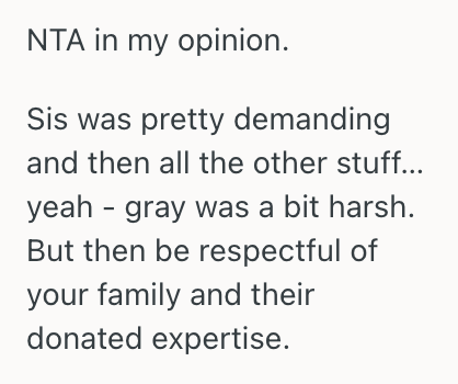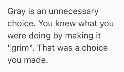 Then, she pulls me aside like: “Why would you make it grey? That’s so passive-aggressive.”