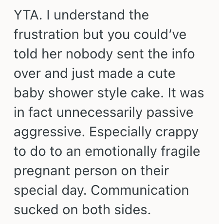 AITA for making my sister’s gender reveal cake grey because she wouldn’t tell me the gender?