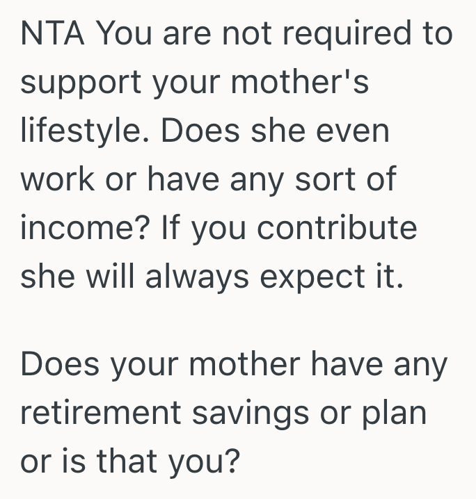 My sister points out how my mom has had a hard life and she deserves to travel and have fun, and that her situation right now is not her fault, but i disagree.
