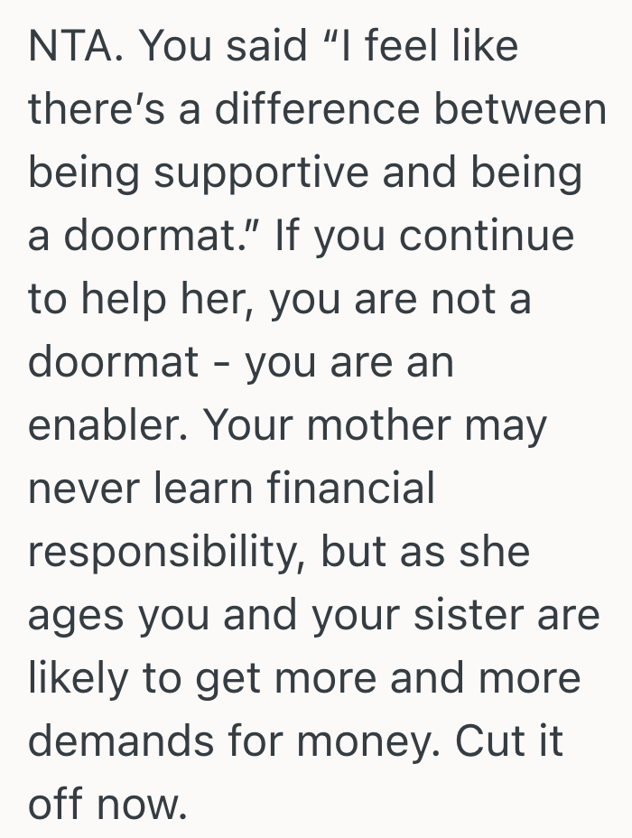 My sister thinks I’m being cold-hearted, but I feel like there’s a difference between being supportive and being a doormat.
