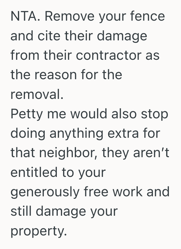 Then the neighbor has the nerve to ask for even more money to fix the fence.