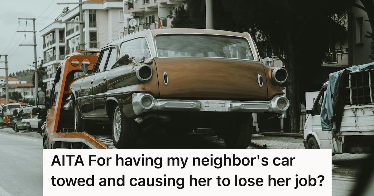 AITA For having my neighbor’s car towed and causing her to lose her job?