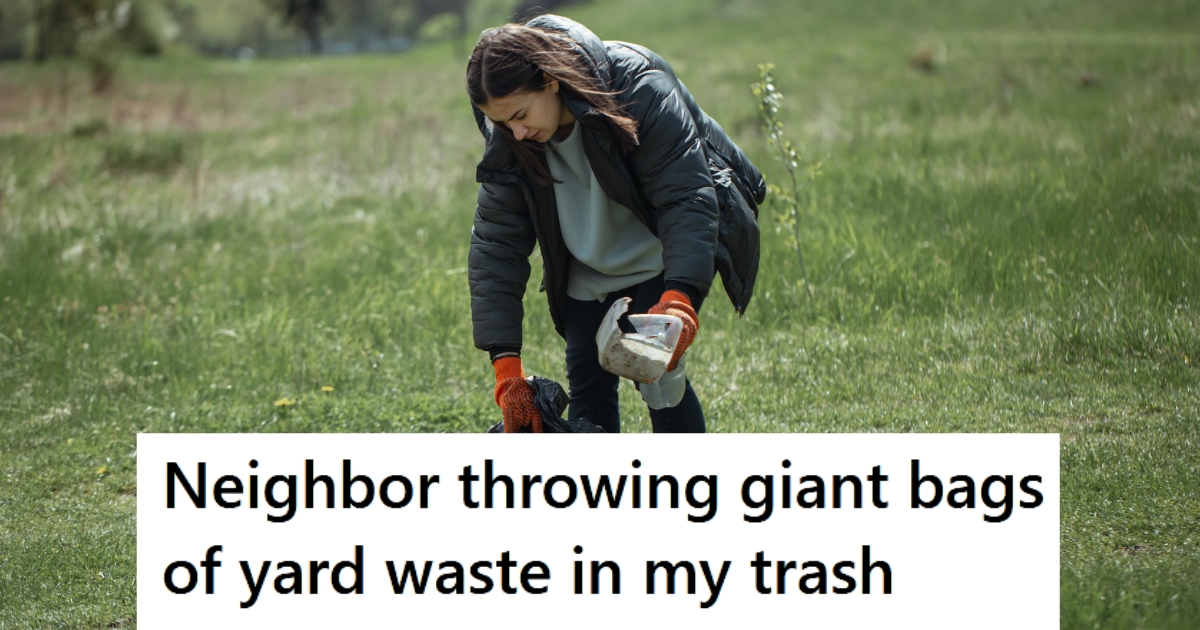 In this woman’s case, her neighbor kept throwing bags of yard waste in her trash, like he was colonizing his territory there or something.