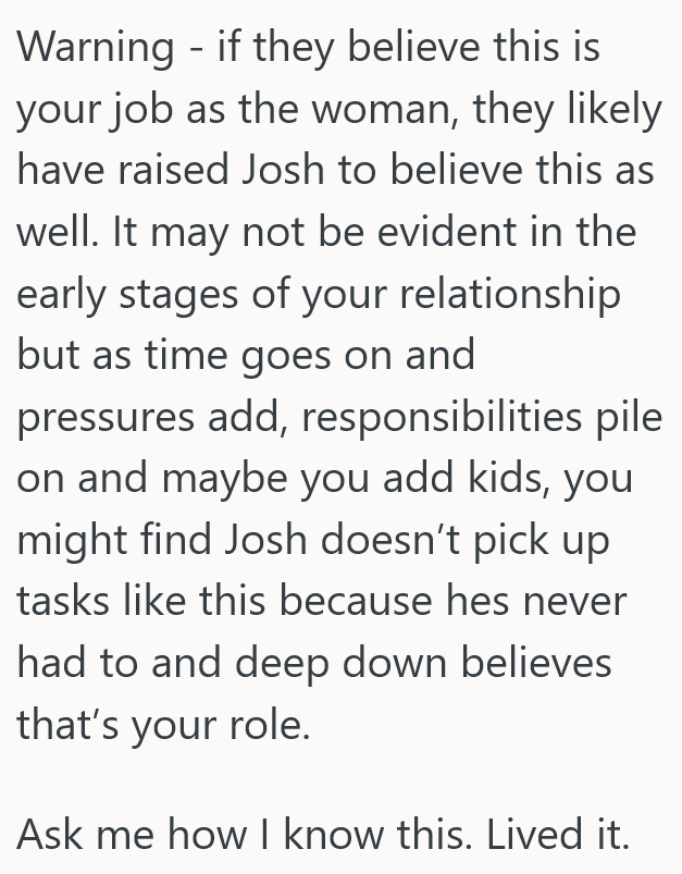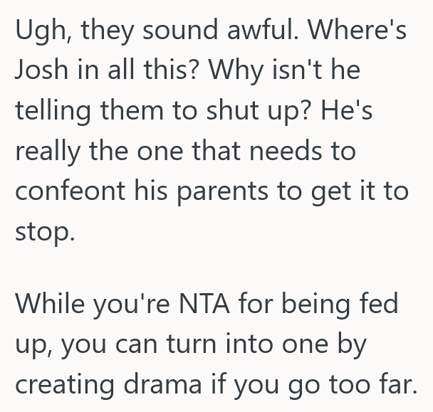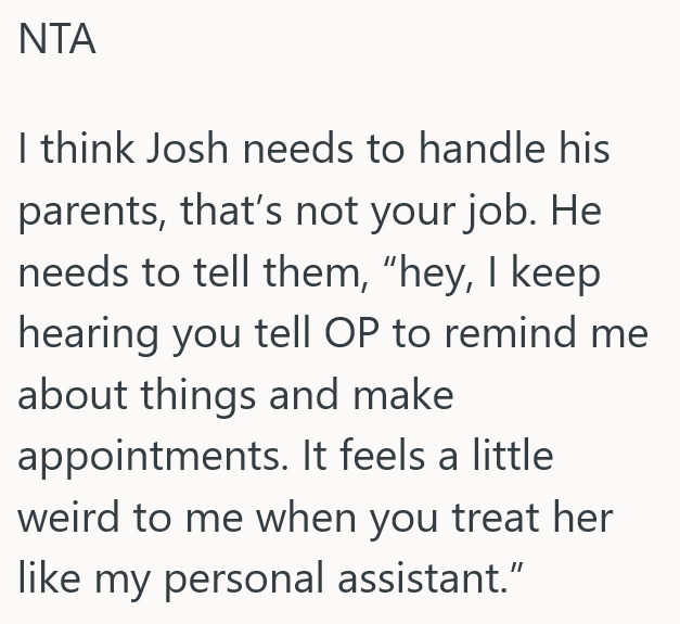 Now I’m planning on being a little harsher and telling them I’m not Josh’s babysitter and to leave me out of these concerns.