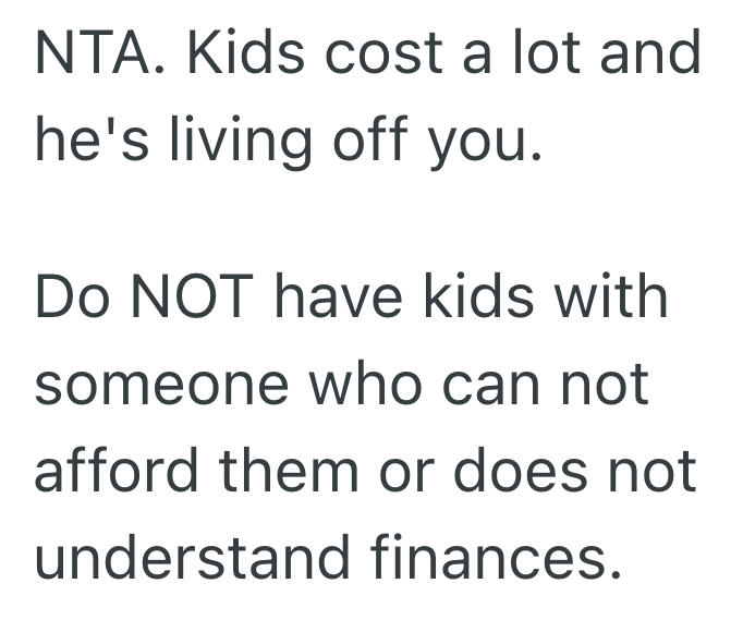I get where he’s coming from, but kids are an expensive commitment that we can’t afford.