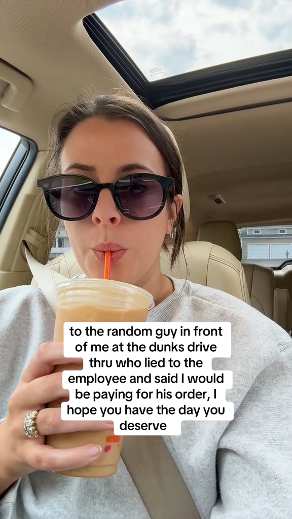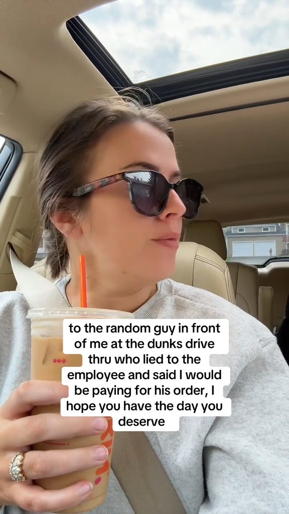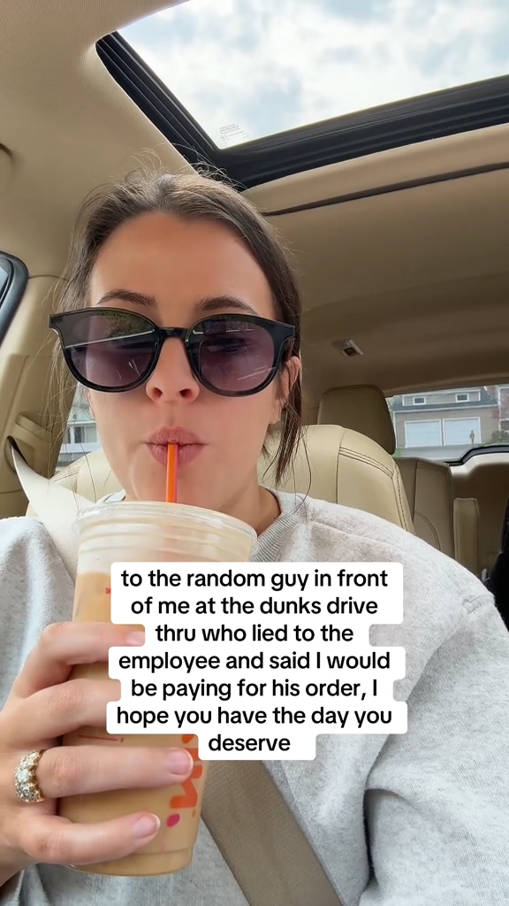 “To the random guy in front of me at the dunks drive thru…” reads the caption.