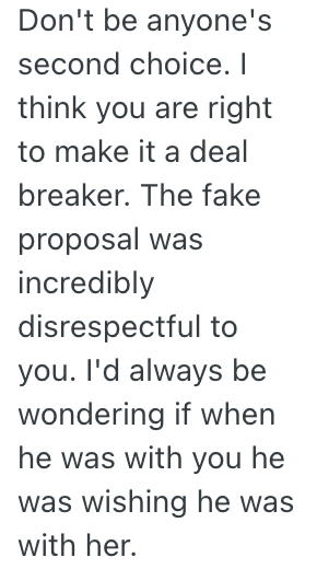 He apologized for the fake proposal and said he didn’t realize how hurtful it was until we talked about it.