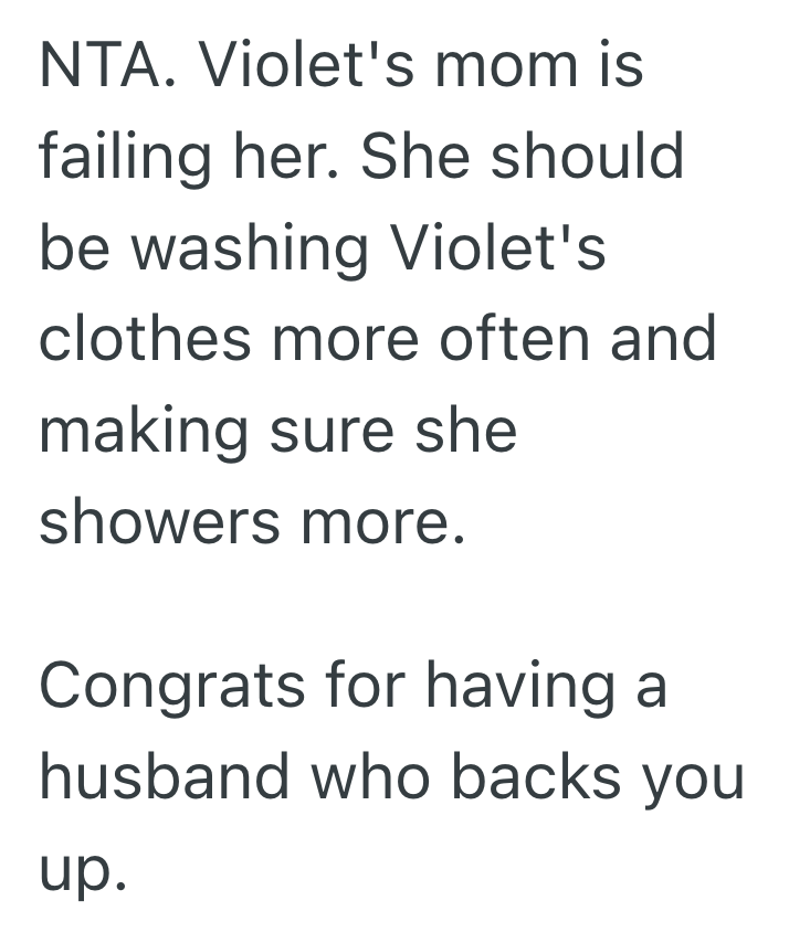 Violet’s personal hygiene problems seem to be exacerbated by her mother’s inaction.
