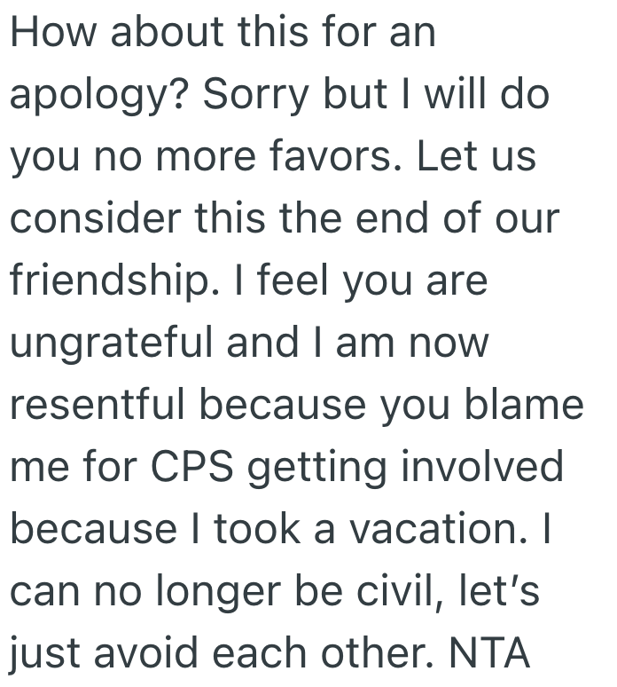 I messaged her telling her if child protective services are involved, it’s because she lacks good parental skills.