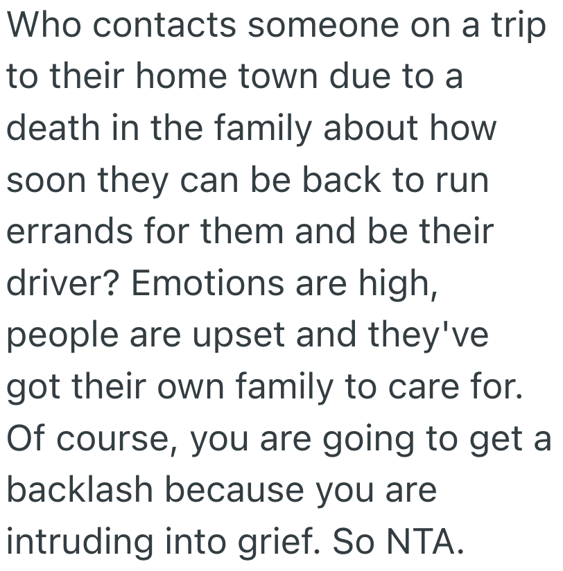 Midway through our vacation, my neighbor messages me asking when I’m going to be back to take her and her son to their weekly doctor’s appointments.