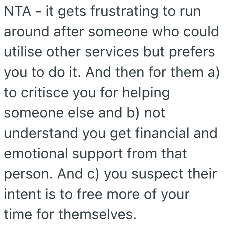 Meanwhile, all my mother seems to do is demand, demand, demand.