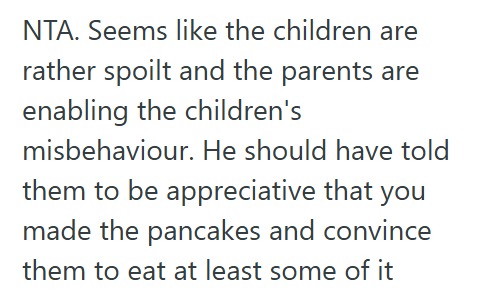 The father then blamed me for the one-hour delay, saying I could’ve made a new batch of pancakes in the meantime.