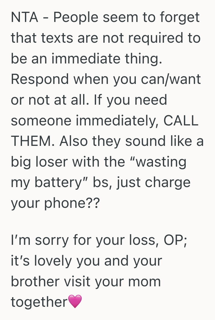 AITA for “wasting” my friend’s time waiting for me to reply because I went to go visit my deceased mom.