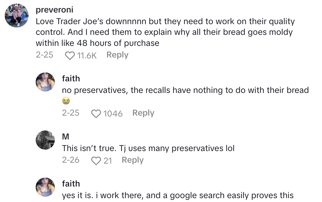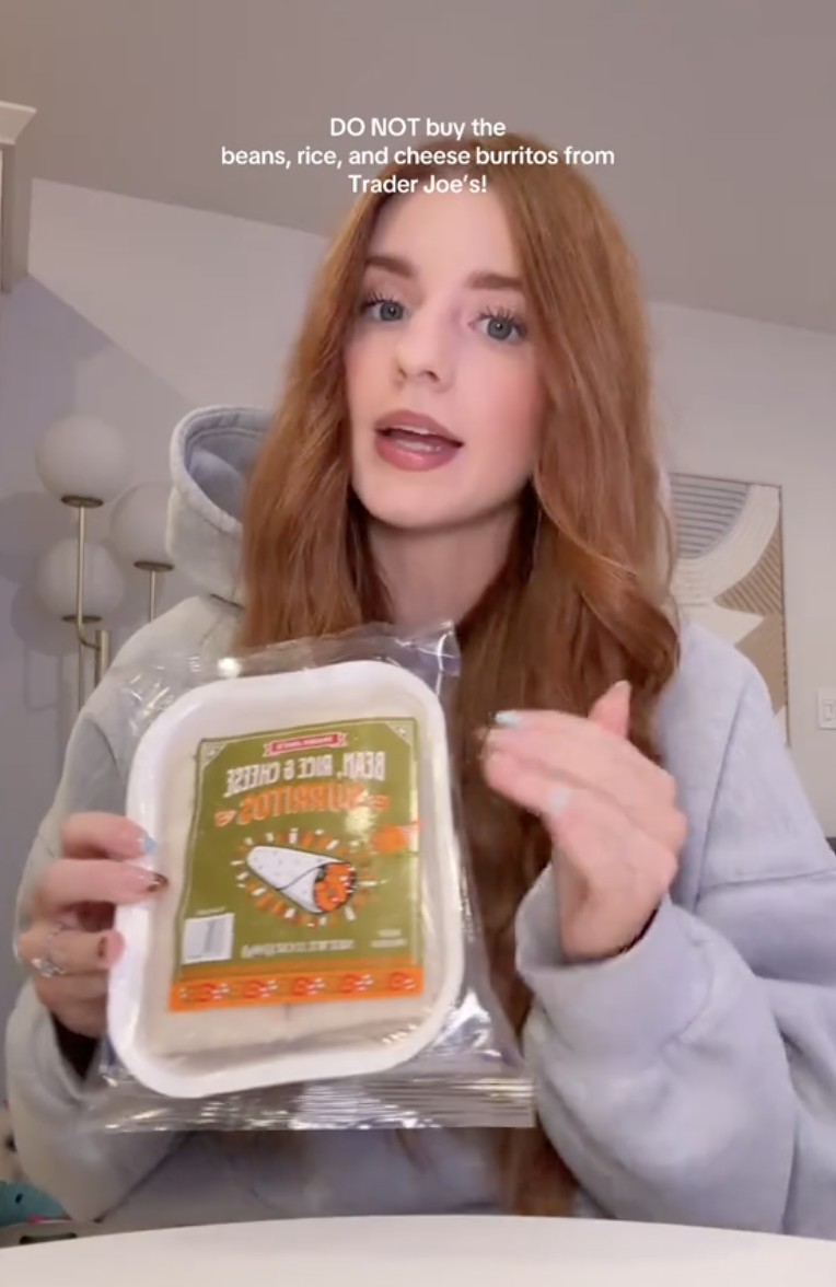 Bridget showed viewers a package of burritos and said, “I am begging you. If you have recently bought this from Trader Joe’s, do not buy it. Do not eat it. There are thorns in them.”