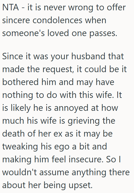 AITA for offering condolences to my ex-husband’s wife after her ex-husband passed away, even though it upset her and she had my ex tell our daughter I was out of line?