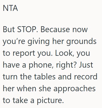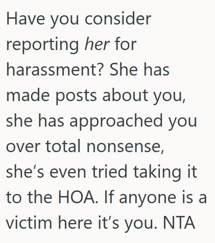 This commenter says to report her for harassment.