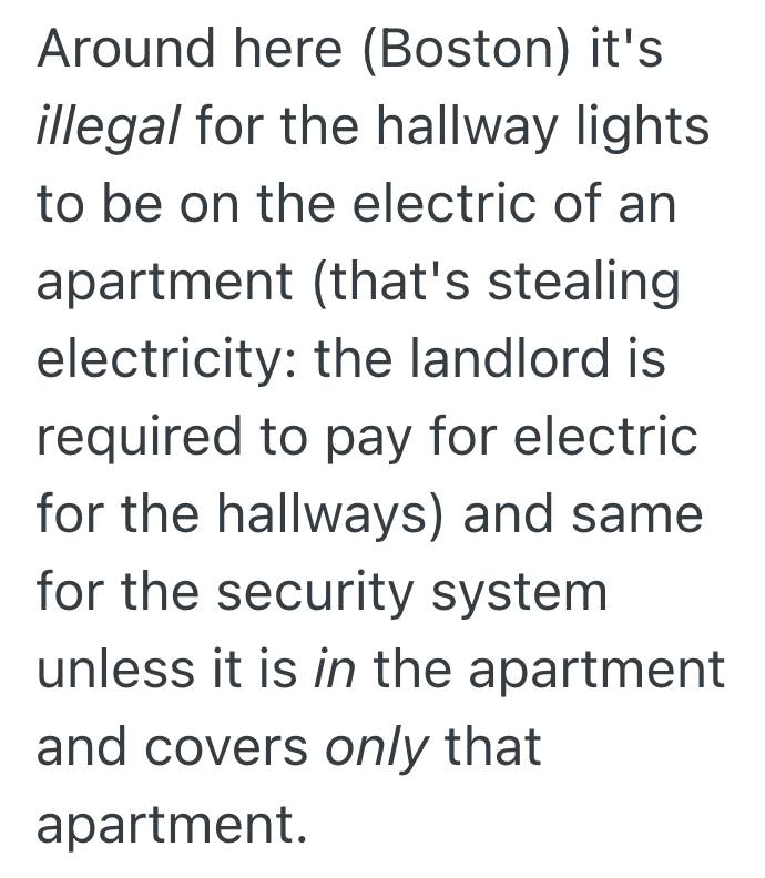 It does seem like it should be illegal for tenants to pay for the electricity in common spaces.