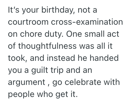 Birthdays are about making the other person feel special, not shoving their responsibilities in their face.