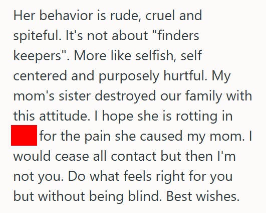 She even told me that she plans to leave them to her children—not mine—and that I’ll never have them.