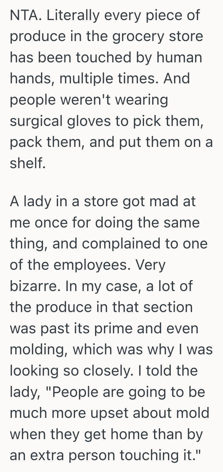 Is there an unspoken rule about touching produce at the grocery store that I don’t know about? AITA here?