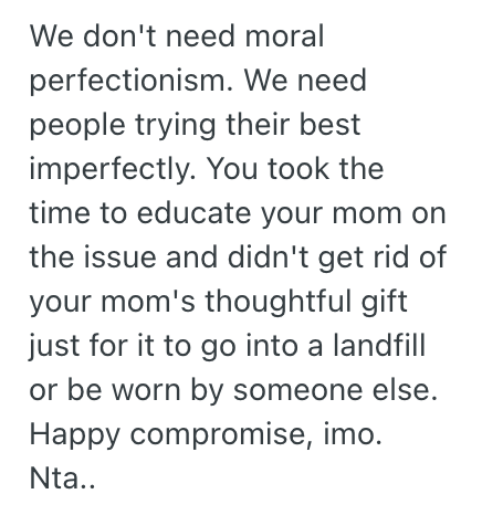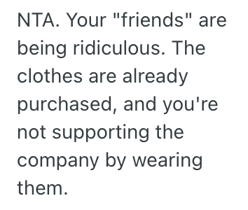 I told her I would prefer not to support the brand, but she already bought the clothes, so I was going to wear them.