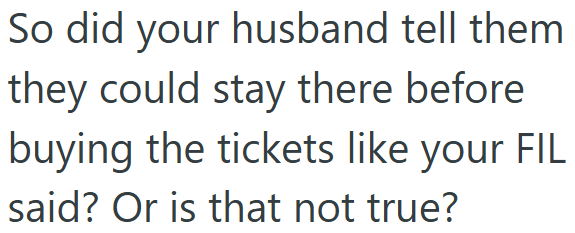 “I thought we talked about this before, you said she and her sister could stay in the condo while you guys are at the wedding”.