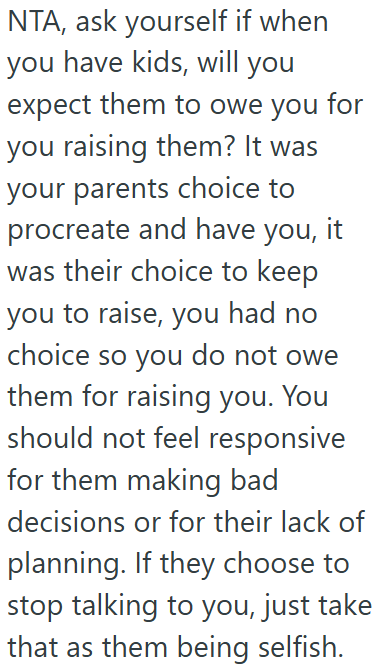 In this woman’s case, she ended up hurting her parents’ feelings when she told them she’s not their retirement plan.
