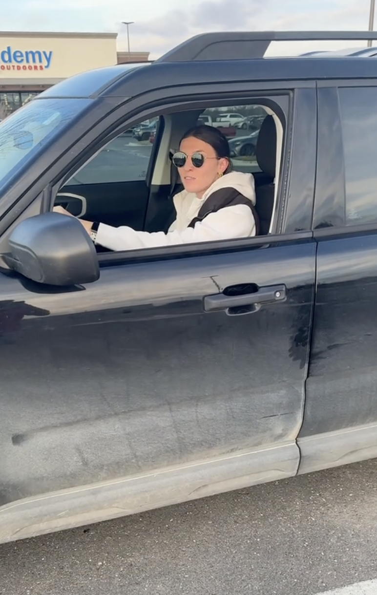 The video showed Bethany backing her car up and viewers can hear the vehicle making a strange sound.