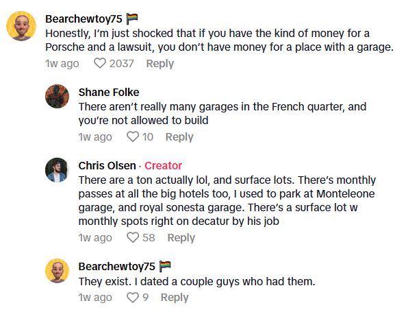 The caption continues, “Some rich dude in the Quarter threatened to sue a local bar over their bubble machine blowing bubbles on his Porsche.”