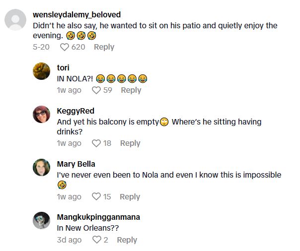 Finally, the caption concludes, “Hundreds of people came out yesterday to blow bubbles in front of his house and tell him – don’t move to New Orleans if you don’t like fun.”