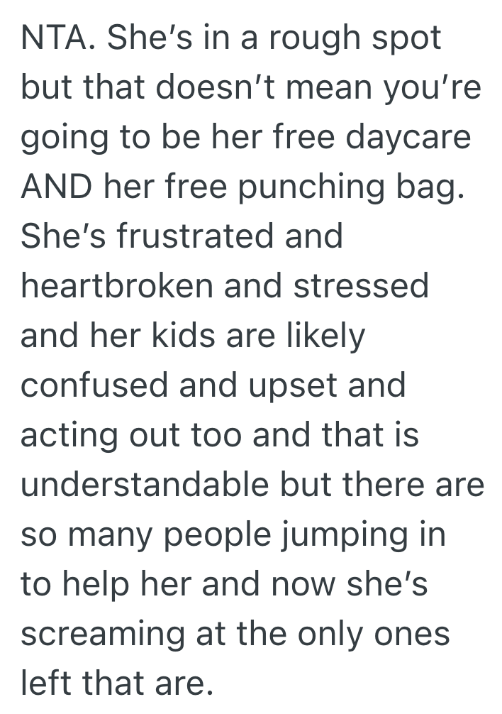 Here’s the problem, we watch the kids regularly, every Saturday while she works and several times a week we have to get them from school and watch them.