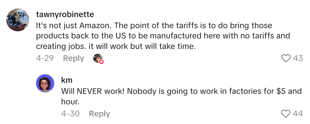 @marla_branyan Amazon and tariffs vs. Tiktok and tariffs. It’s the same situation! #tariffs #tariff #amazon #usa #amazonshopping