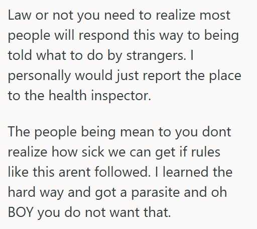I’m not trying to get anyone in trouble—I just wish the staff were better trained and willing to uphold the law so customers don’t have to be put in uncomfortable or even unsafe situations.