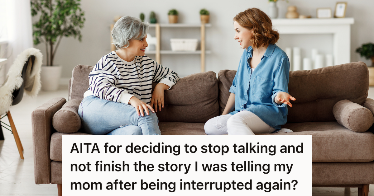 AITA for deciding to stop talking and not finish the story I was telling my mom after being interrupted again?