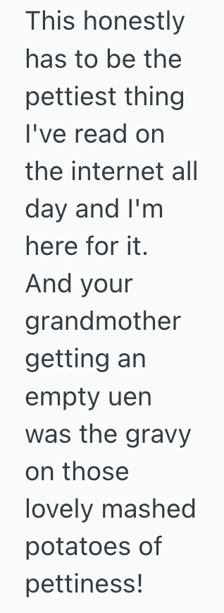 They said they couldn’t give me the urn that had already been purchased (it had to go to whoever paid for it), so basically my grandmother paid for an urn… and was handed an empty one.