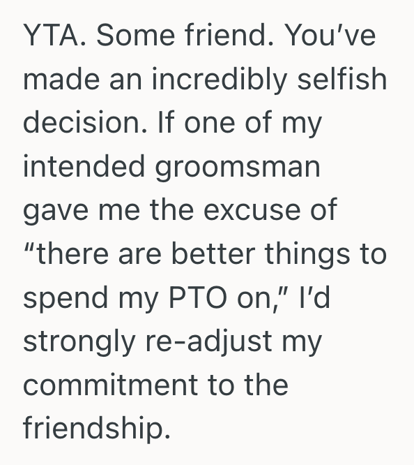 When one man decided to opt out of the wedding party for one of his friends of 15+ years, he didn’t realize how deeply this decision would rock their friendship.