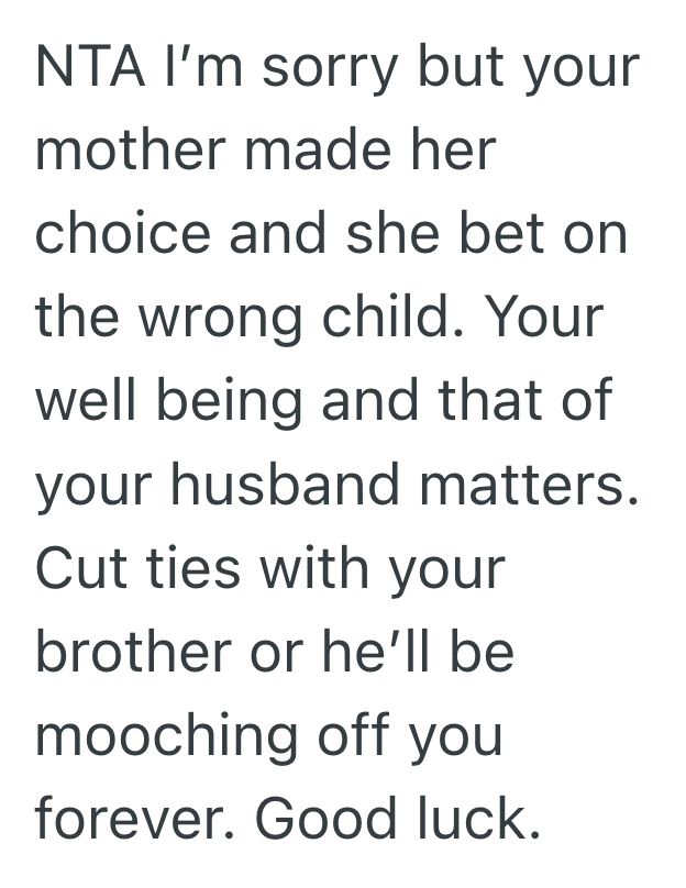 My mom has basically signed everything to my bro (who she knows steals, lies, etc).