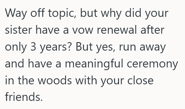 My sister (30f) and her husband had their vow renewal last weekend (3yrs married).