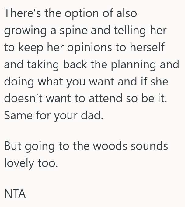 My dad and his wife moved 3hrs away where it snows all the time, she’s suggested I use her house for the venue, and even sending me dresses she thinks I should wear…