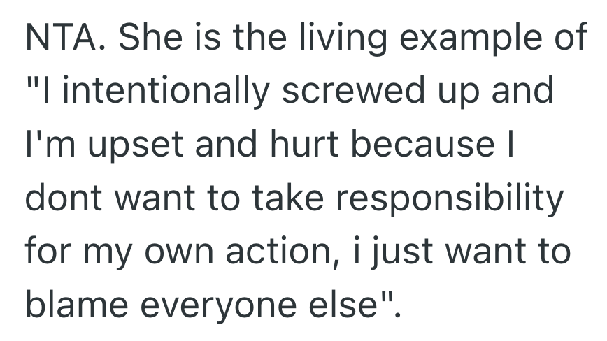 I added that if she told them, she’d have the opportunity to apologize and explain herself, but if I did, I would not do that for her.