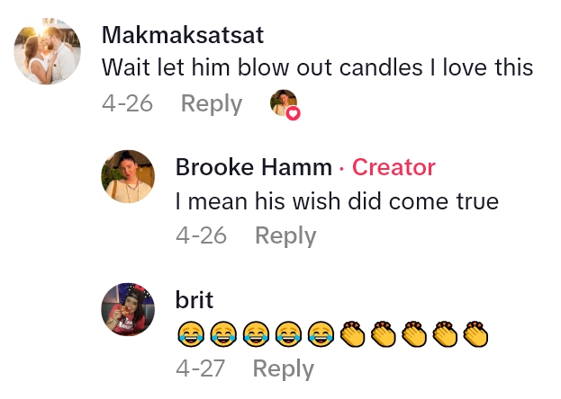 “Fiance’s voice comes over the phone: Do we need, like, candles for – birthday, like those cute, not like the numbers, but just like, birthday candles for our wedding cake?”