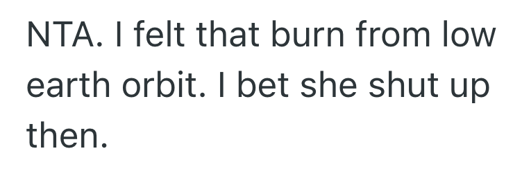 It was a very good burn. I hope she’ll rethink being a jerk next time.
