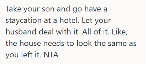 This user suggests moving out for a bit so the husband has to deal with everything at home.