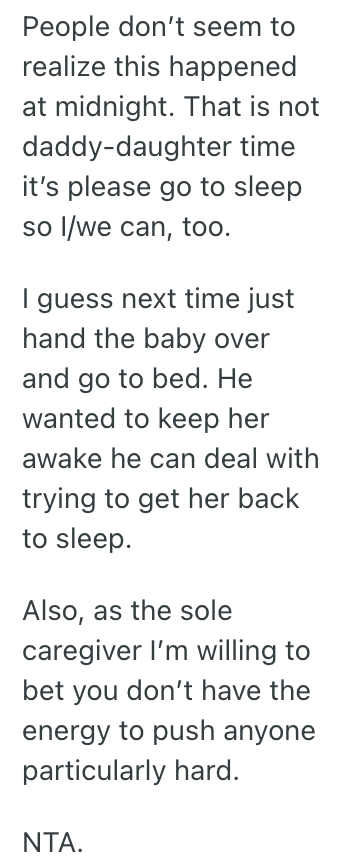 Getting a child to sleep for a while is a minor miracle…so you can understand why this woman got annoyed with her husband.