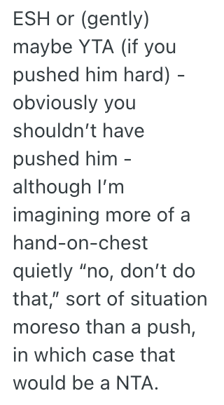 A few minutes later I could tell something was off and asked if he was mad at me. He said something along the lines of “yes. I got home and you pushed me” I said I was sorry again and that I didn’t mean to push him and explained myself again.