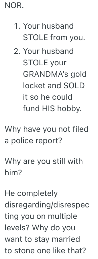 AITA for making my husband sleep on the couch after he pawned my grandmother’s necklace for drone parts?