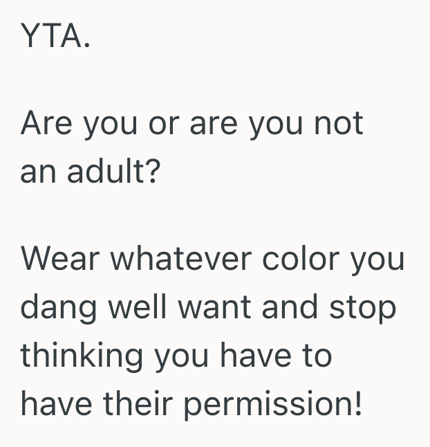 This woman and her husband were invited by his stepmother to a family event, and she was told by the stepmom that she doesn’t have to wear the family color.