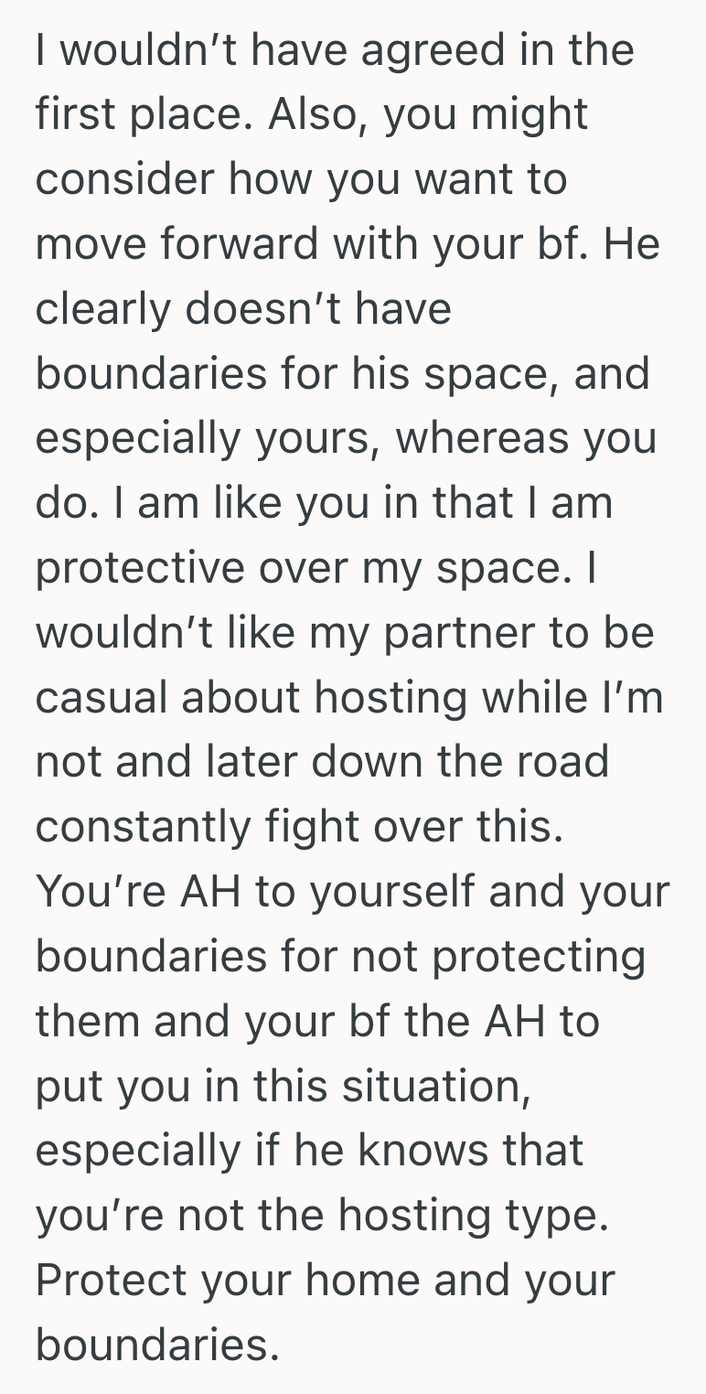Not everyone has the same comfort level with guests, which her boyfriend doesn’t seem to understand.