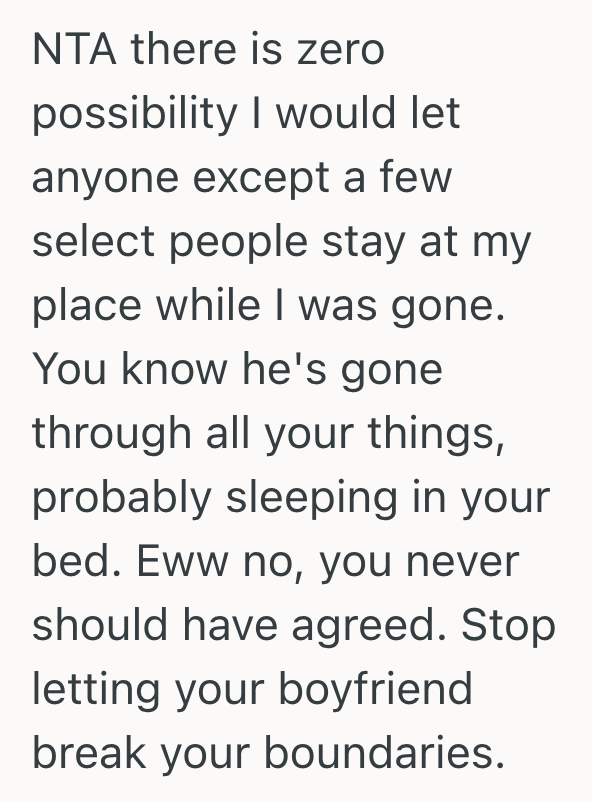 A couple of weeks ago, my partner (34M) asked if his friend, “Lenny” (50s? M), could stay in my apartment while I (32F) was away on an international trip. I live alone (my partner lives with friends nearby).
